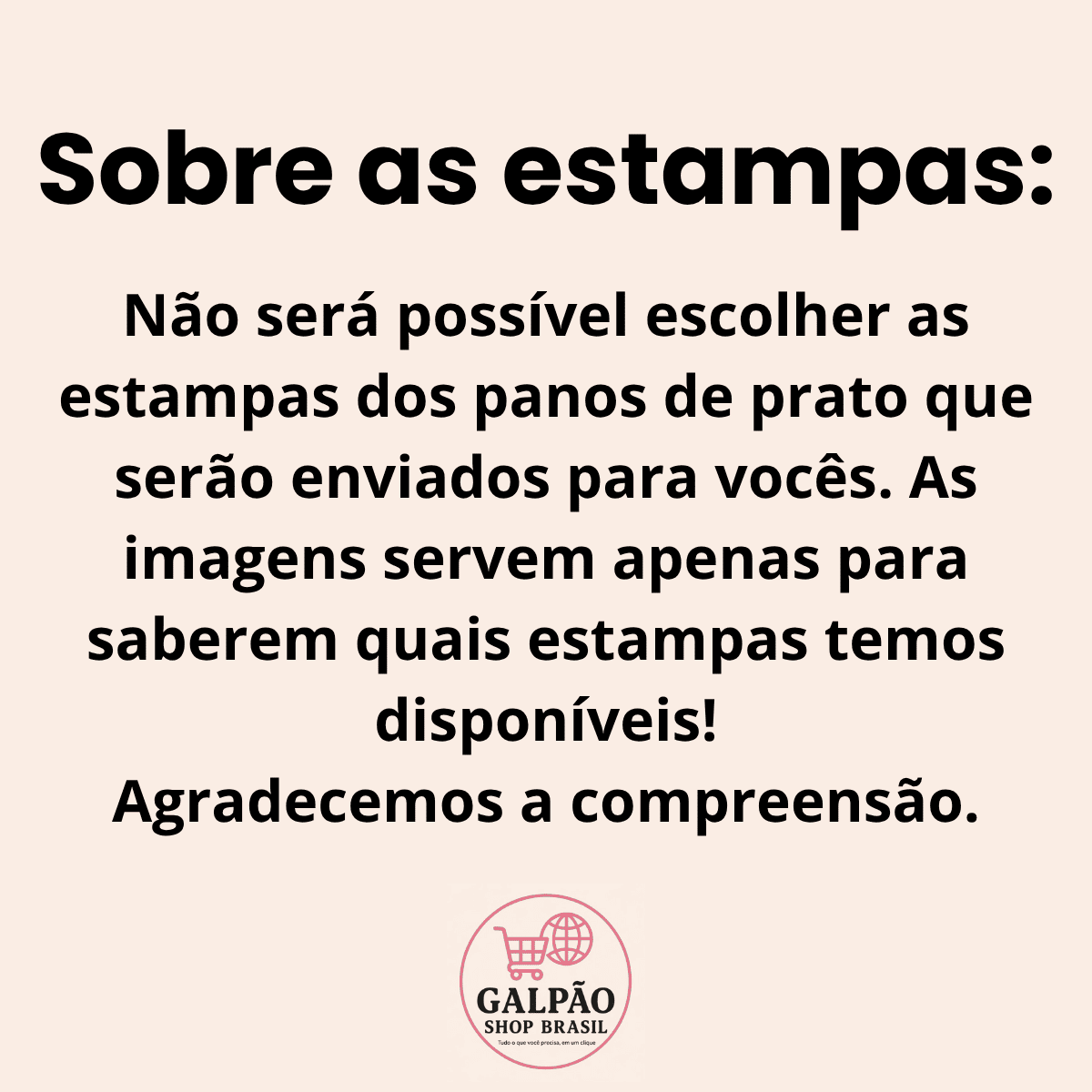 Não será possível escolher as estampas dos panos de prato que serão enviados para vocês. As imagens servem apenas para saberem quais estampas temos disponíveis!