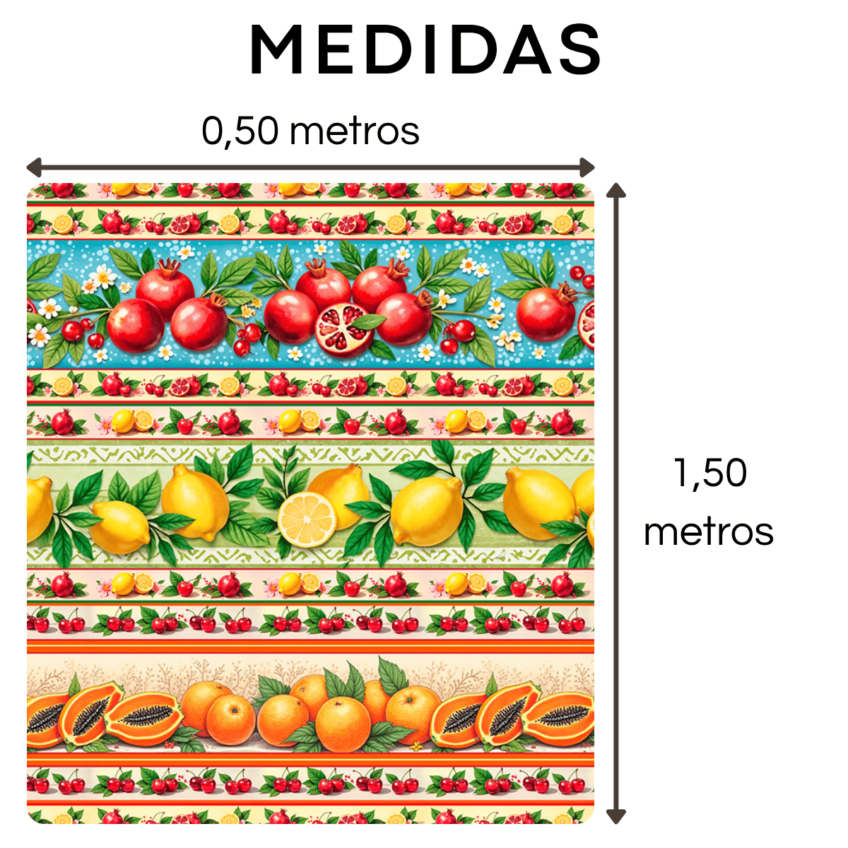 • Medidas de venda: 0,50 m de comprimento x 1,50 m de largura